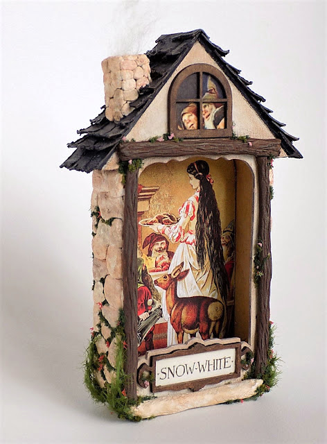 I used an image from the Snow White with the Dwarves collage sheet and the blank tin from the kit to construct the Dwarfs' wee cottage, which has to be a much more pleasant place than a Prince's boring old castle. Plus, tiny houses are the way to go.