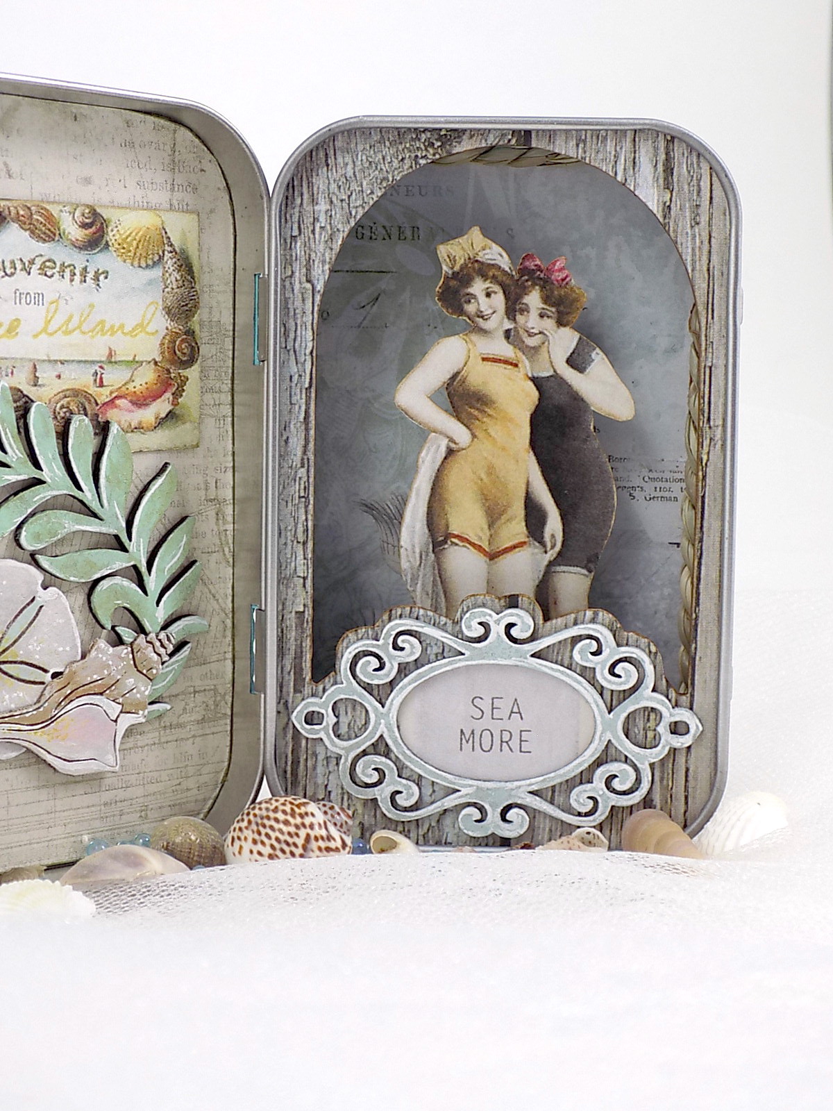 There are so many pieces to the kit that I found myself making another tin for my MIL. She and all of her high school girlfriends make an annual trip to a beach and spend a week together, so I thought I'd make her a little gift that represents her friendships and love for the beach.